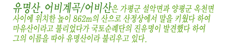À¯¸í»ê µî»ê¾È³»(¼Ö°¡µç): 031-584-9961